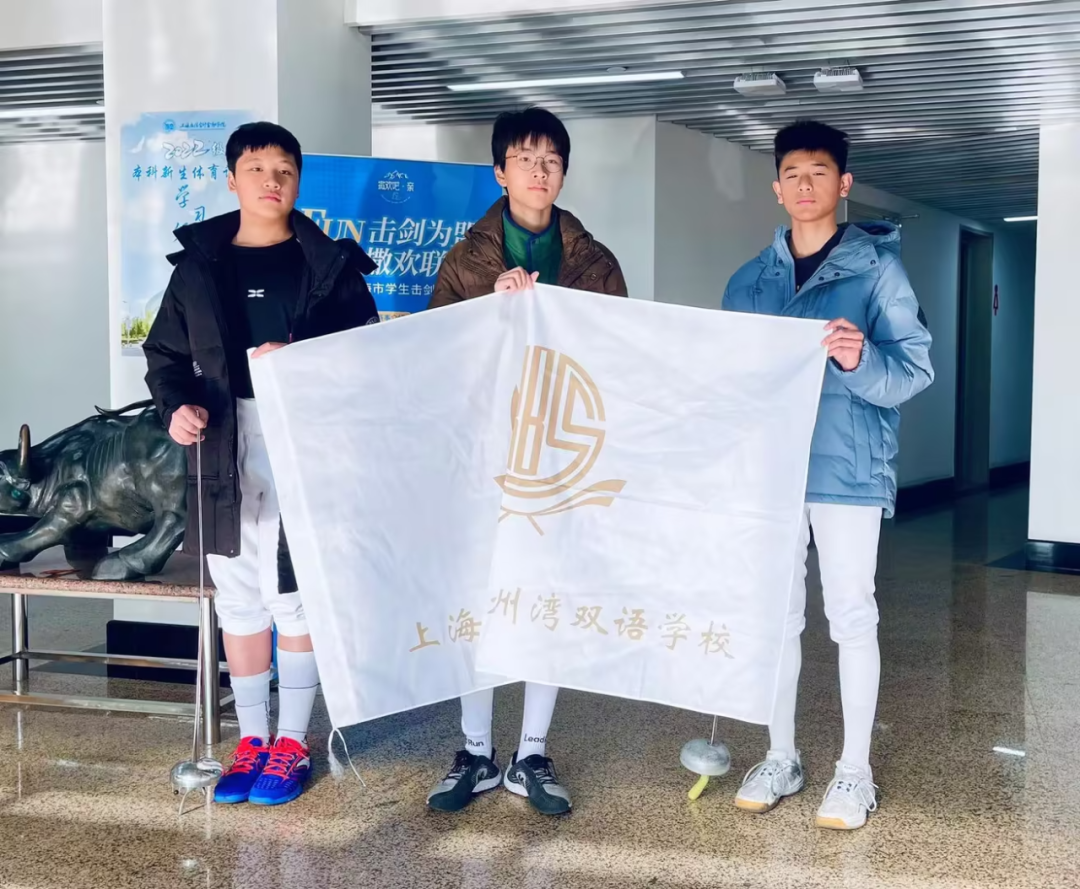 上海金山杭州湾双语学校本次派出9名校小剑客参赛,其中小学组 4 名(邓涵宸、梁琬晴、施棋越、黄思尧)初中组 5 名(毛思齐、张沐晨、倪嘉昊、马筠程、王泽开)共参加了 6 个个人项目,一个团体项目的角逐。来自 5-6 班的施棋越小将获得了小学组男子佩剑的亚军; 8-1 毛思齐 8-3 张沐晨 8-2 倪嘉昊三位同学获得了男子重剑团体的第 11 名。比赛中,少年剑客们亮剑出鞘、勇于进攻,攻防转换、气势高昂。在剑道上比速度、拼技巧,将击剑运动的力与美充分展现,赛出了杭校新一代剑客的果敢与顽强。