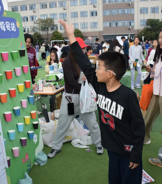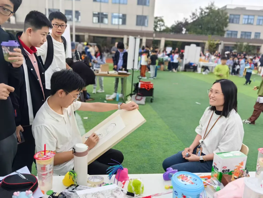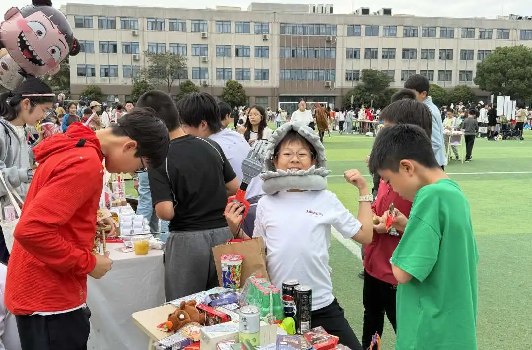 摊位前的同学们脸上洋溢着热情的笑容,卖力地介绍着商品; 顾客 们则成群结队,精心挑选着心仪之物,手中拎起沉甸甸的 战利品 袋。老师们则穿梭于各个摊位之间,与学生们愉快地交流,脸上挂着欣慰的笑容。几位前来参与的家长志愿者,也忙着维护秩序、帮忙结算,眼神里满是赞许与支持。整个操场人声鼎沸,欢声笑语与讨价还价声见证了这段美好的时光。