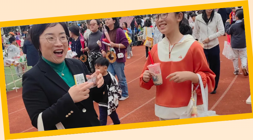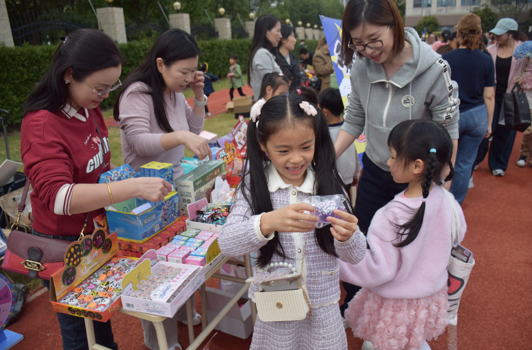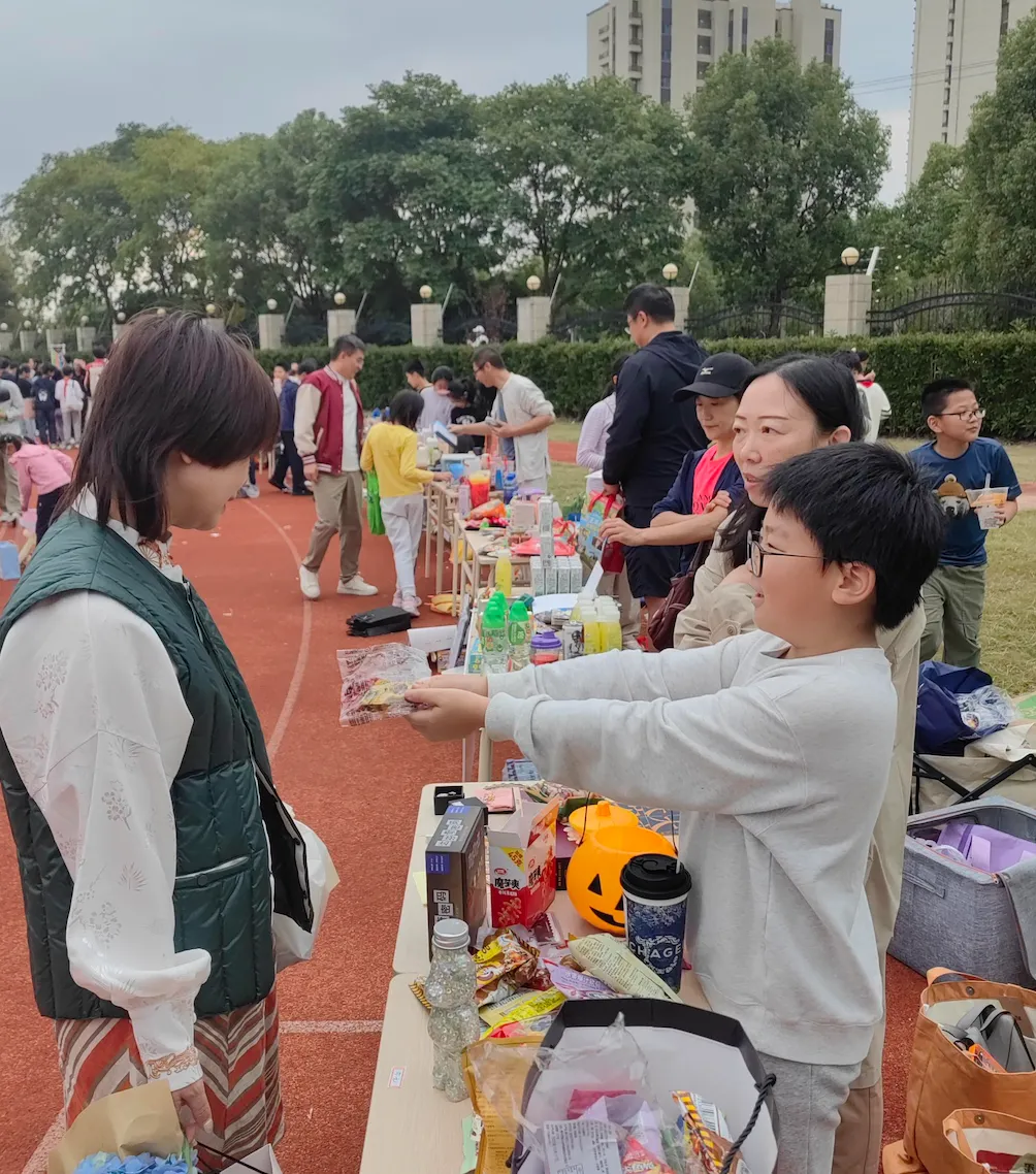 Stall owners promoted their goods zealously, customers carefully selected items, teachers engaged in cheerful conversations, and parent volunteers helped maintain order. The entire playground was bustling with noise and laughter.