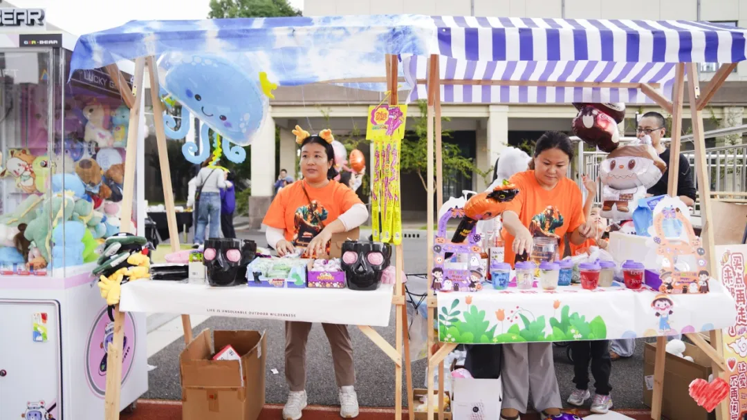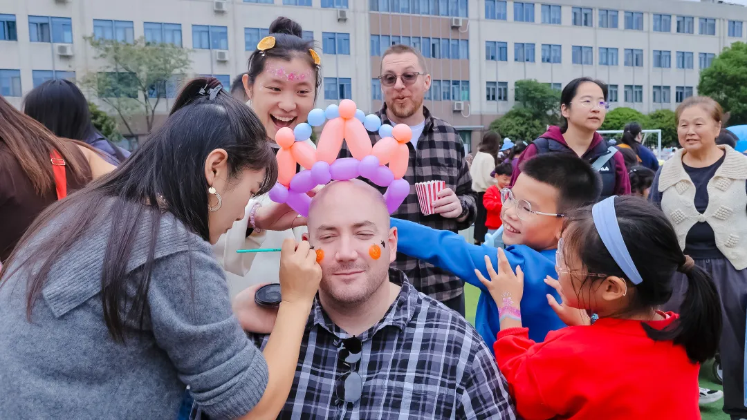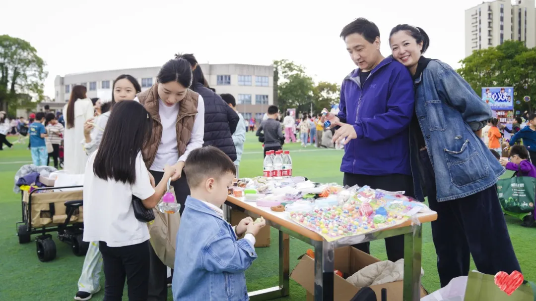 家长志愿者们也在现场忙碌着。他们不仅协助孩子布置摊位、维持秩序,还带来了趣味十足的脸部彩绘和手工体验活动。看到孩子们在镜前被画上可爱的图案,笑声此起彼伏,整个校园都洋溢着欢乐与温情。