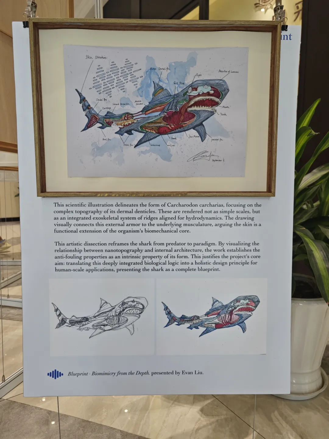 Throughout his presentation, Evan demonstrated logical rigor and eloquent delivery. He was not merely presenting a project, but conveying a new philosophical framework for the future. "It challenges us to perceive nature not as a resource to be harvested, but as a repository of wisdom to be understood." He encouraged his peers to view the shark as a "mentor," one that instructs us that "the future of safety may reside not in more potent chemicals, but in more intelligent designs, inspired by a blueprint refined over millions of years."