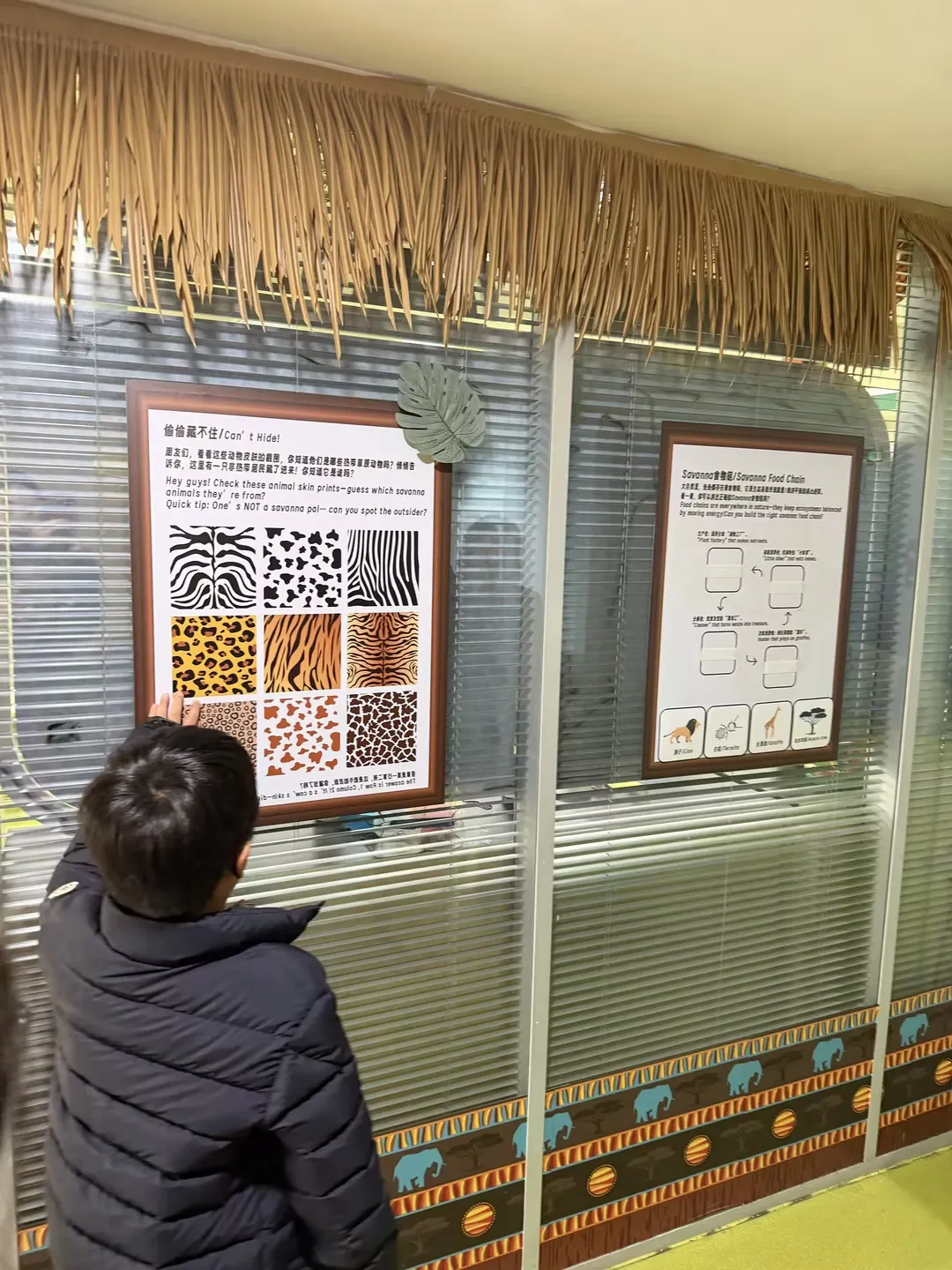 Grade 1's theme was ‘Animal and Plant Habitats’, transforming classrooms into vibrant natural sanctuaries. Lush greenery, lifelike animal models and hand-painted habitat scenes immersed pupils in nature. Here, children not only discovered diverse species but also grasped the importance of ecological conservation.