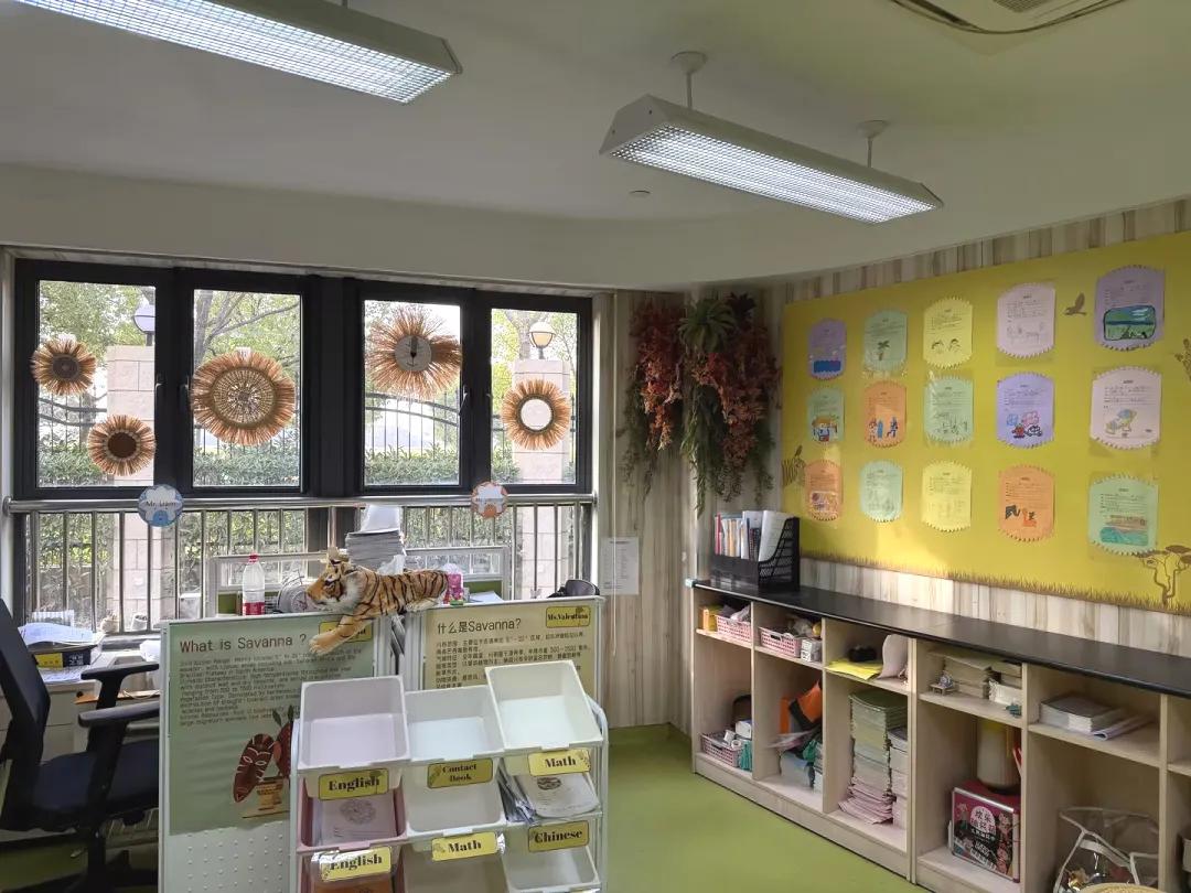 一年级的主题是 动植物栖息地 ,教室仿佛变成了一个个生机勃勃的自然乐园。郁郁葱葱的绿植、栩栩如生的动物模型、手绘的栖息地场景,让孩子们仿佛置身于大自然之中。在这里,孩子们不仅认识了多样的生物,更懂得了保护生态环境的重要性,每一个角落都充满了探索与发现的乐趣。