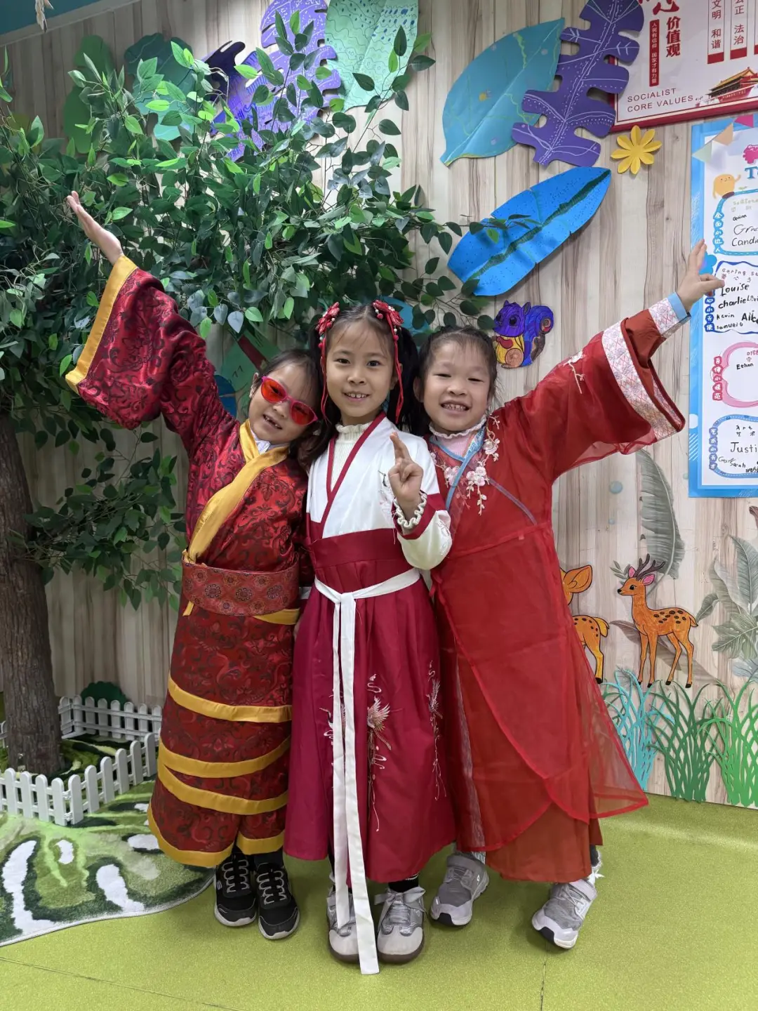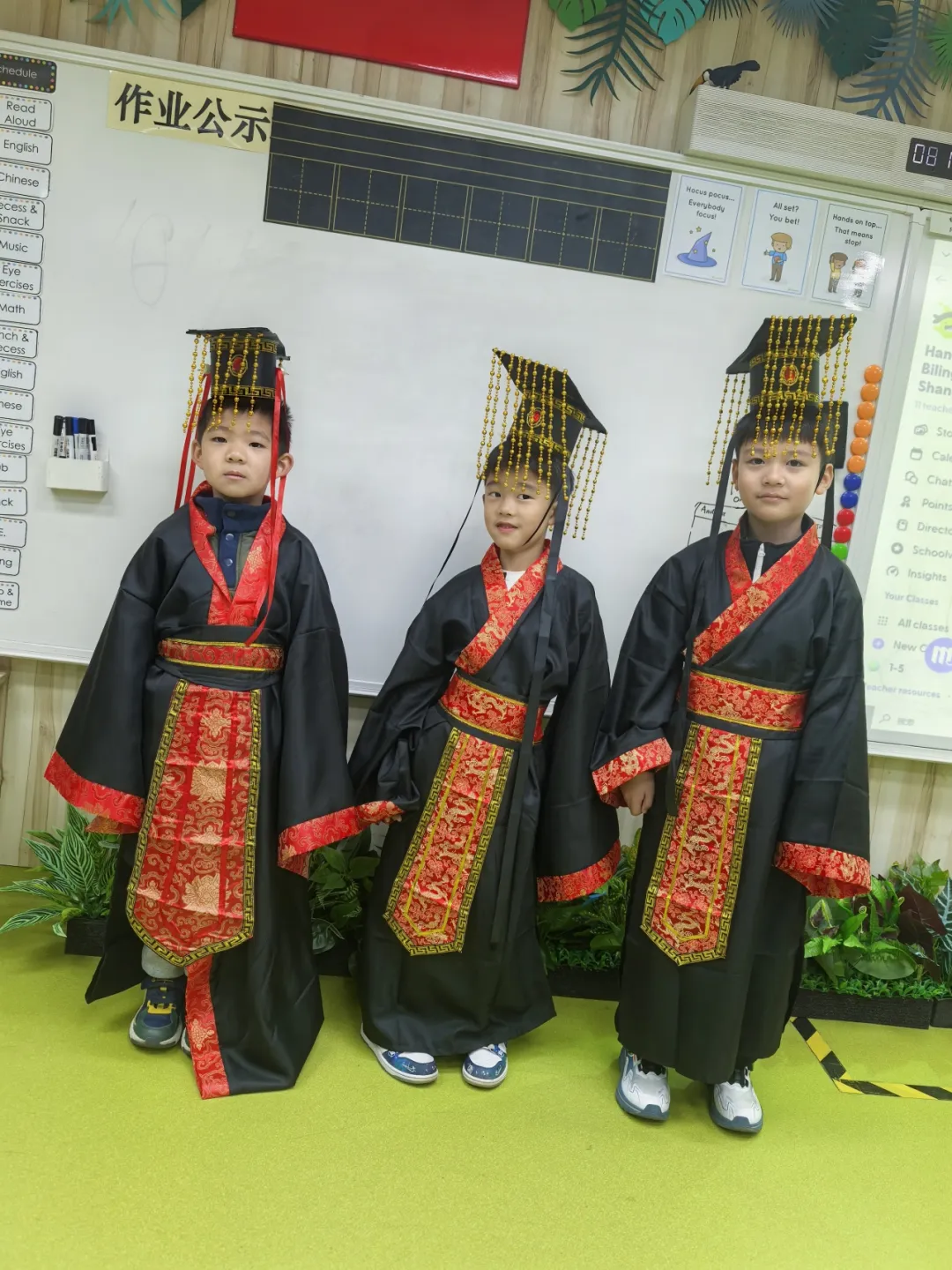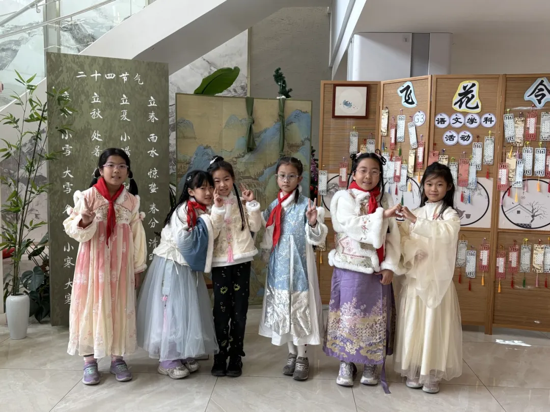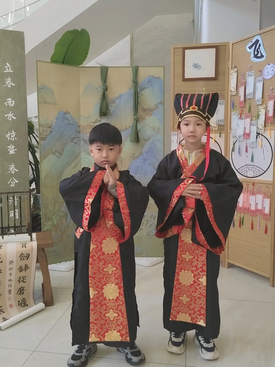 这场融合美学教育、语言训练与跨学科思维的文化盛宴,不仅让孩子们在沉浸式体验中触摸中华文明脉络,更通过项目式学习培养了文化自信与创新精神。四年级某位同学分享: " 当我穿上汉服吟诵诗词时,仿佛真的变成了古代的小书童,这种感觉很奇妙,也让我更爱我们的传统文化了。 "