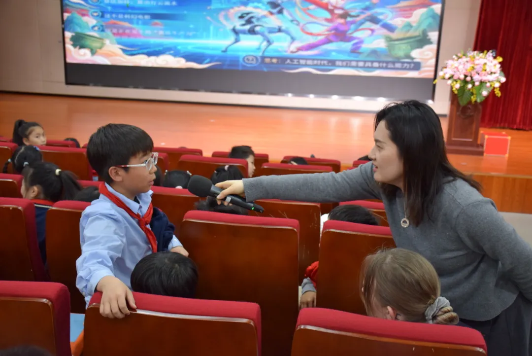 Director Gu shared the inspiring stories of many scientists and teenage young inventors, and raised profound questions one after another: What abilities do we need to master in the age of artificial intelligence? As students, what are you striving for? Who should be the role model in your heart? These questions guided the children to set up their role models through reflection and firm their direction for progress through perception.