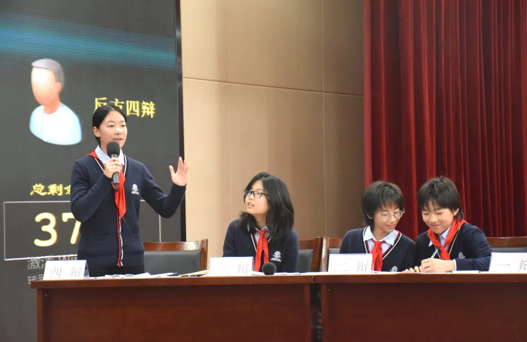 首场辩论聚焦极具人文关怀的 “人生应该做加法 / 减法”命题,五六年级辩手为正方、七年级辩手为反方,两队围绕人生价值的实现路径,呈现了一场关于选择与取舍的思辨对话。