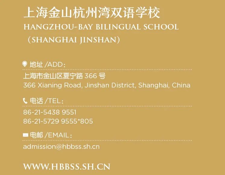 Shanghai Jinshan Hangzhou Bay Bilingual School (HBBSS) was established in 2017 with the goal of providing outstanding K-9 education. Under the guidance of the Chinese government, our private bilingual school has a unique philosophy which can be summed up with the phrase: “Chinese Identity with a Global Perspective.”